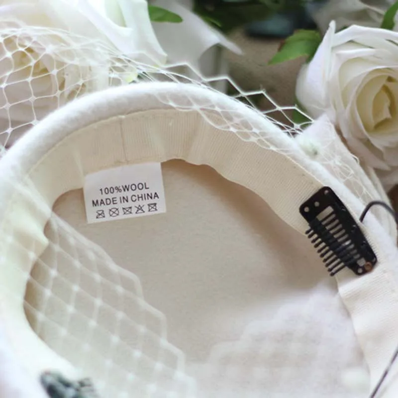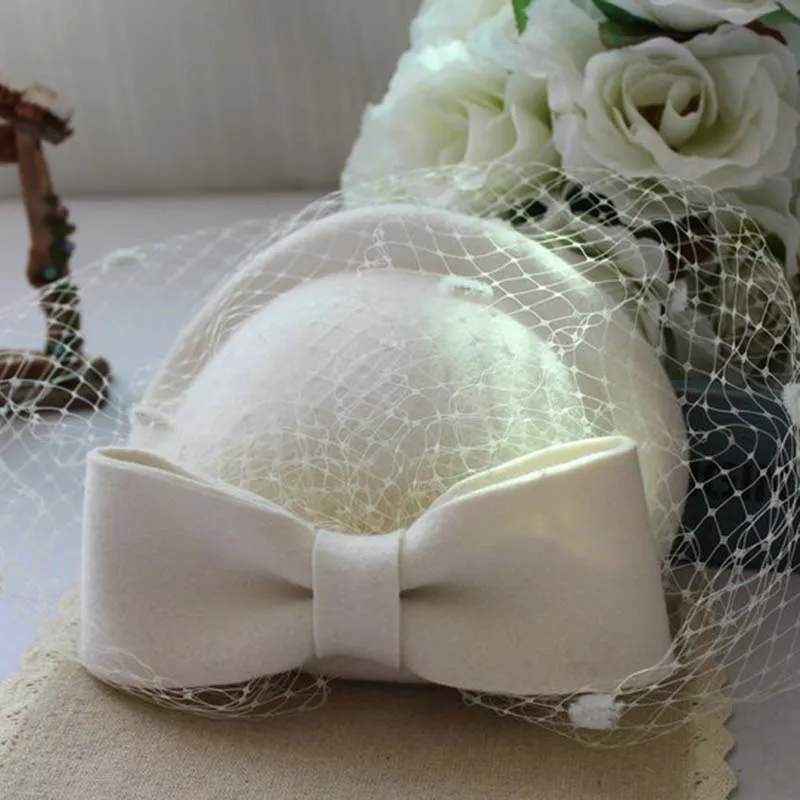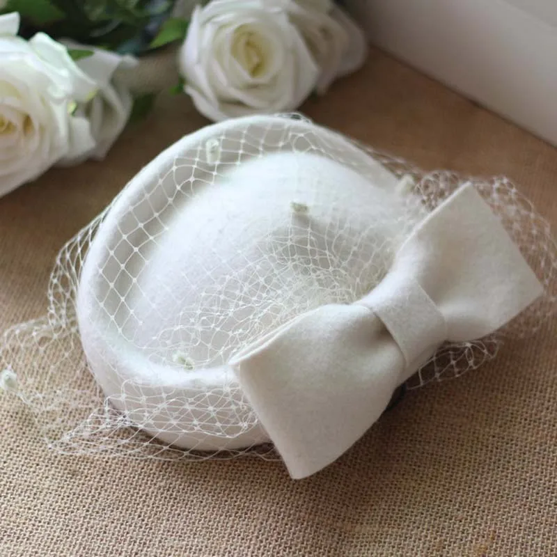 Product Name: QPALCR Women Wool Pill Hat Vintage Mesh Bow tie Felt Fedoras Party Wedding Fascinating Ladies Berets
