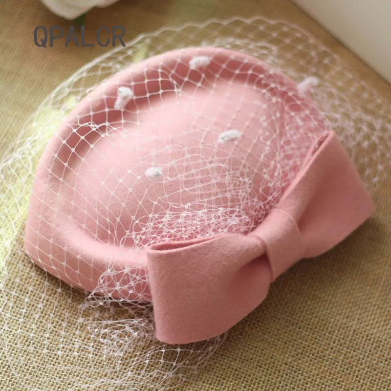 Special Offer QPALCR Women Wool Pill Hat Vintage Mesh Bow tie Felt Fedoras Party Wedding Fascinating Ladies Berets Discount 10% Today!