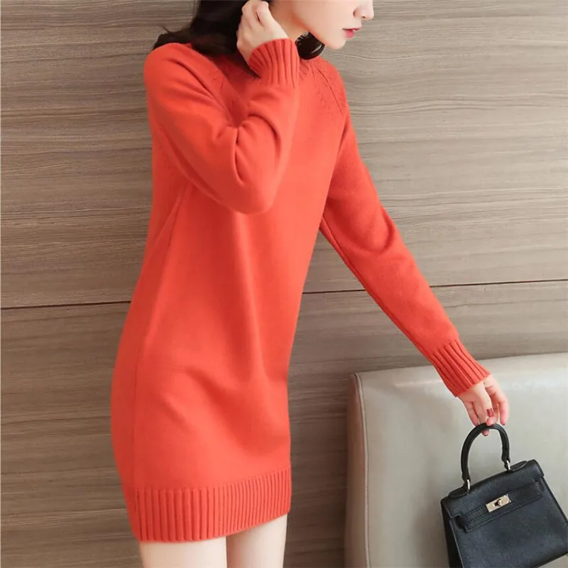 Product Name: 2019 Autumn Womens Long Sweater Female Solid Color Loose Knitted Pullovers Sweater Bottoming Shirts Women
