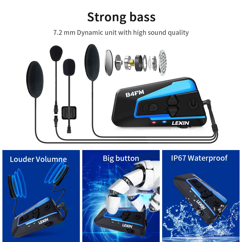 Product Name: Brand Lexin LX B4FM for 4 Riders Intercom Motorcycle Bluetooth Helmet Headsets BT moto intercomunicador with FM radio