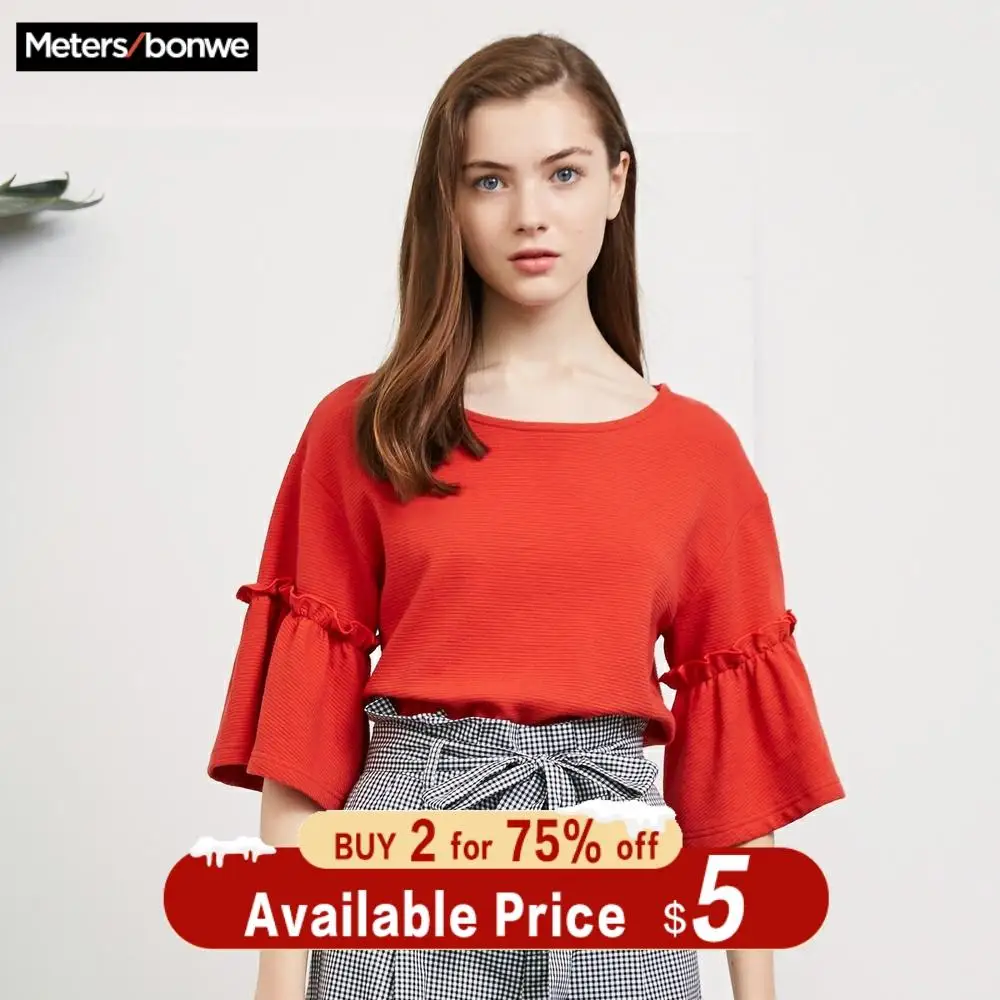 Special Offer Metersbonwe Girls Cotton T Shirt for Women 2019 Summer New Butterfly Sleeve Loose T shirt Korean Style Office Lady Summer Tops Discount 14% Today!