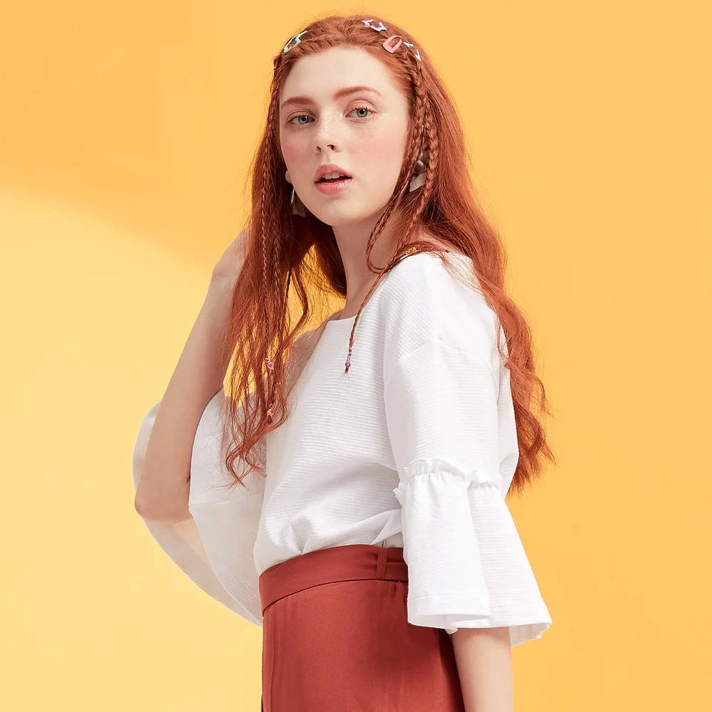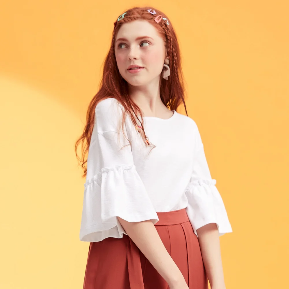 Product Name: Metersbonwe Girls Cotton T Shirt for Women 2019 Summer New Butterfly Sleeve Loose T shirt Korean Style Office Lady Summer Tops
