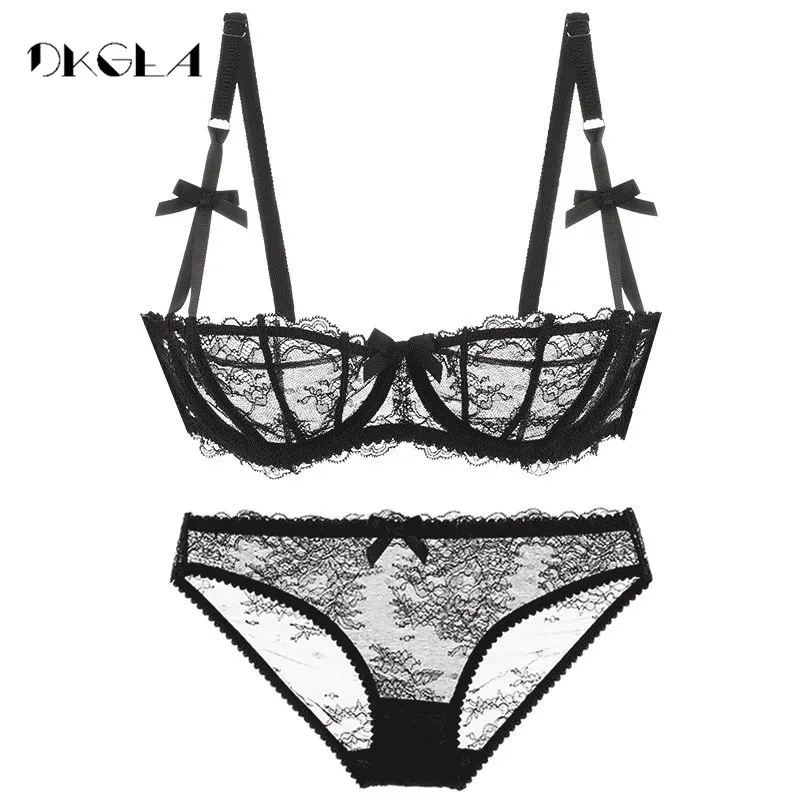 Special Offer Ultrathin Underwear Set Plus Size 34 36 38 E Cup Sexy Bras Lingerie Lace Women Transparent Bra Set Pink Brassiere Half Cup White Discount 36% Today!