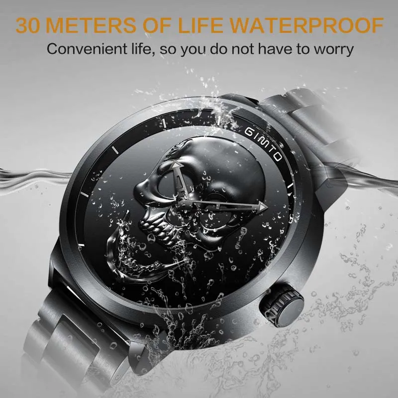 Product Name: 3D Skull Personality Retro Fashion Men s Watch GIMTO Cool Skull Men Watch Luxury Brand Quartz Creative Clock Relogio Masculino