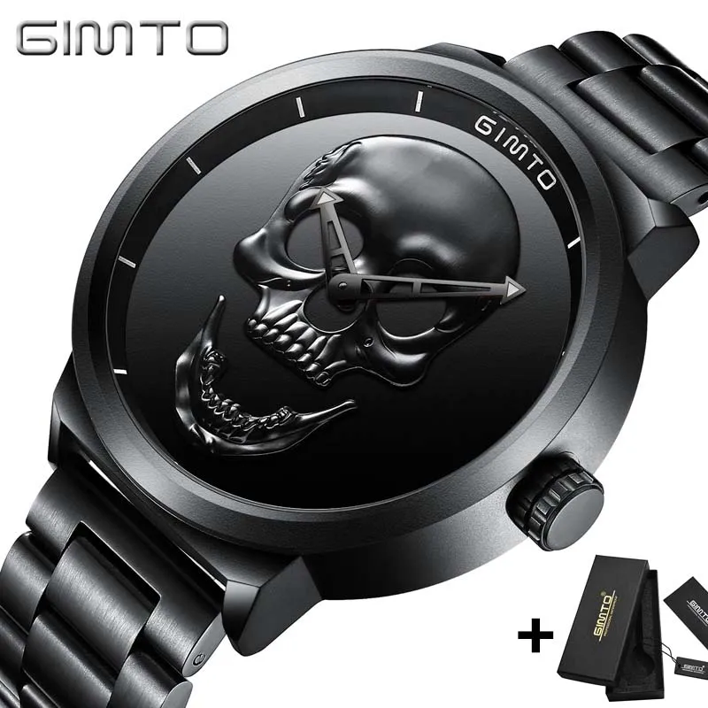 Special Offer 3D Skull Personality Retro Fashion Men s Watch GIMTO Cool Skull Men Watch Luxury Brand Quartz Creative Clock Relogio Masculino Discount 45% Today!