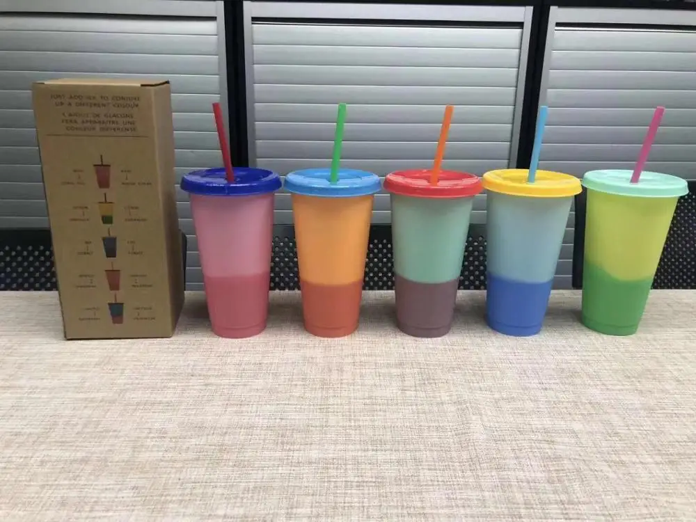 Special Offer 700ML Plastic Temperature Change Color Cups 5pcs Colorful Cold Water Color Changing Coffee Cup Mug Water Bottles With Straws Set Discount 0% Today!