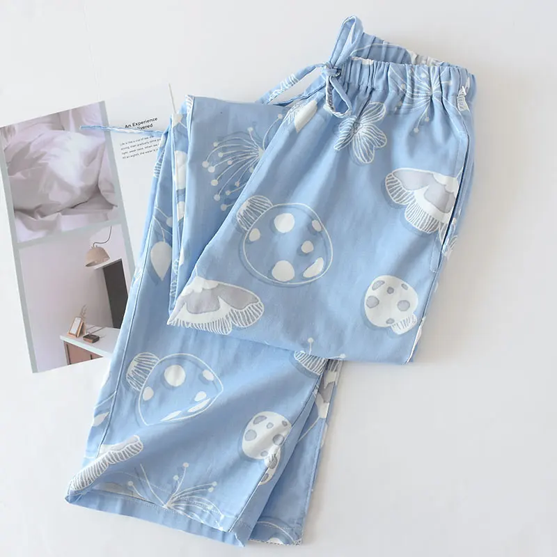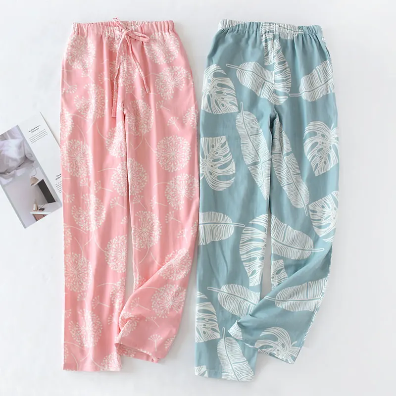 Product Name: Women s 100% Cotton Double Gauze Lounge Pants Length Long Pajama Bottom Print Pijama Pants Womens Bottoms Sleep Wear for Women
