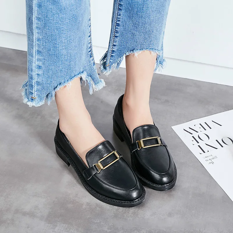 Special Offer 2019 New Women Flat Shoes Round Toe Lace Up Oxford Shoes Woman Genuine Leather Brogue Women Platform Shoes Women Loafers Discount 30% Today!