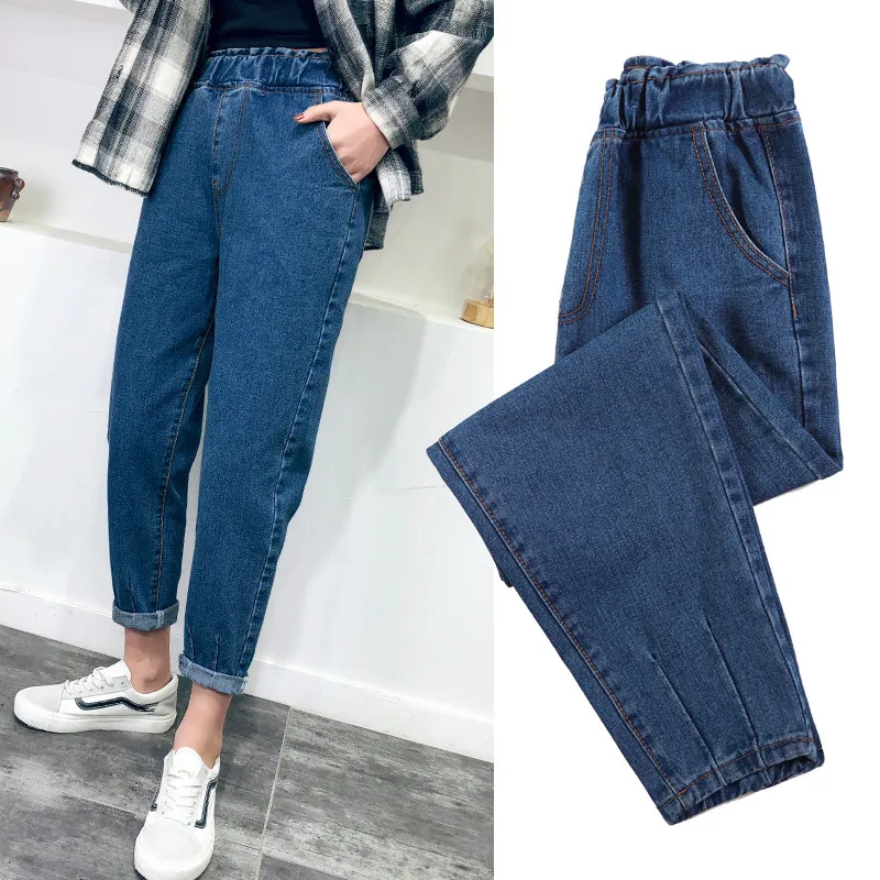 Special Offer Harem Women Jeans Vintage Denim Pants Ladies Jeans Casual Loose Chic Jeans Mom Elastic Waist Boyfriends Jeans Chic Trousers 2019 Discount 30% Today!