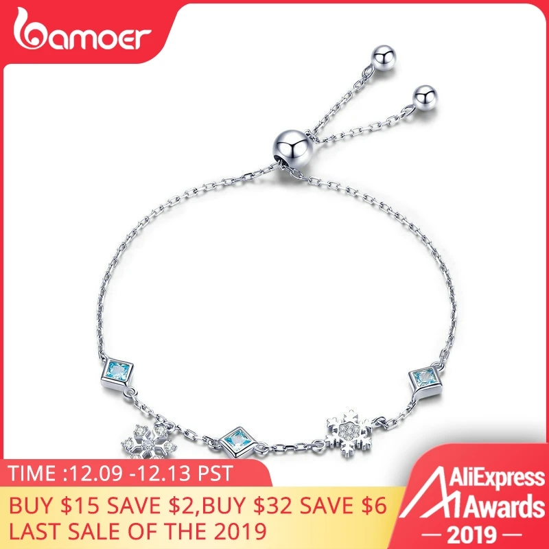 Special Offer BAMOER New Collection 925 Sterling Silver Winter Snowflake Women Bracelets Chain Link Bracelet Sterling Silver Jewelry BSB001 Discount 36% Today!