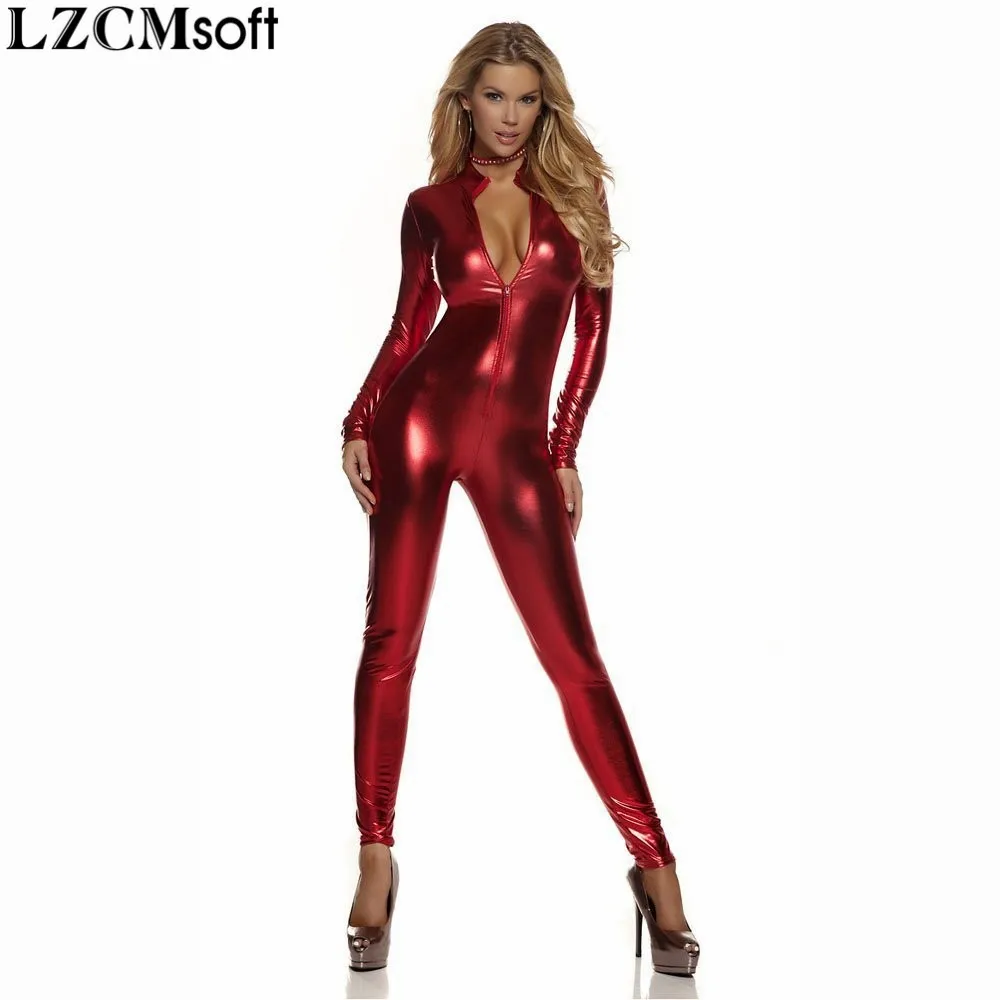 Best . (38% Off) Buy LZCMsoft Women Full Body Unitard Black Catsuit Bodysuit Long Sleeve Lycra Gold Front Zip Turtleneck Metallic Zentai Bodysuits Cheap Online.