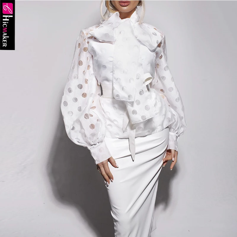 Special Offer Polka Dot Lantern Sleeve Knotted Blouse Women Chic Elegant Office Lady Street Wear Spring Fall Fashion Trends Top Shirt Discount 39% Today!