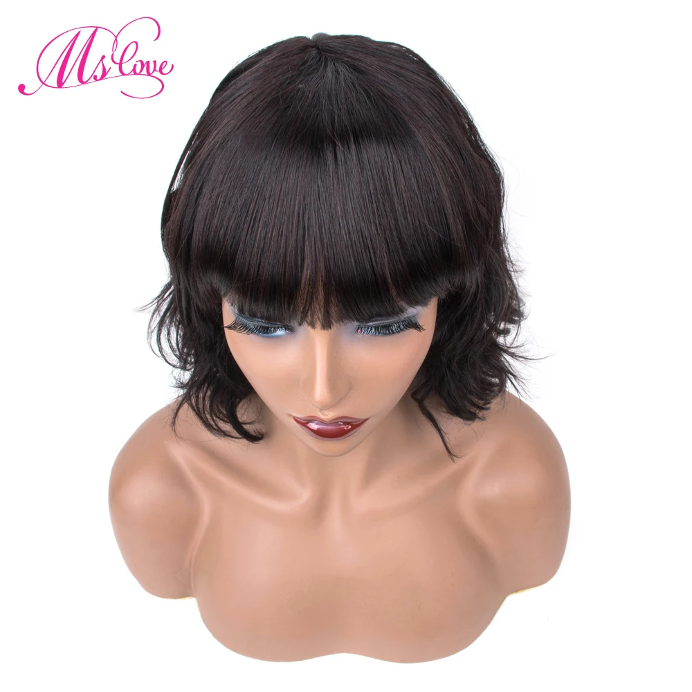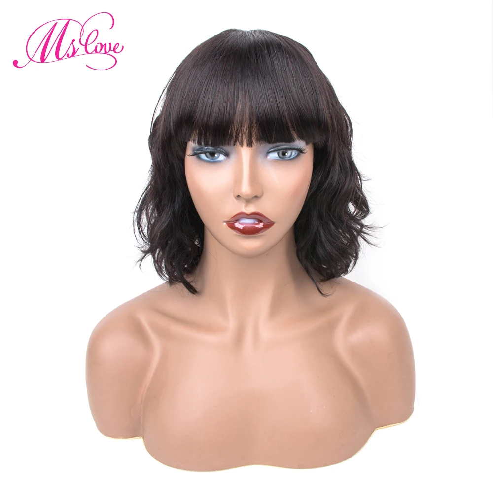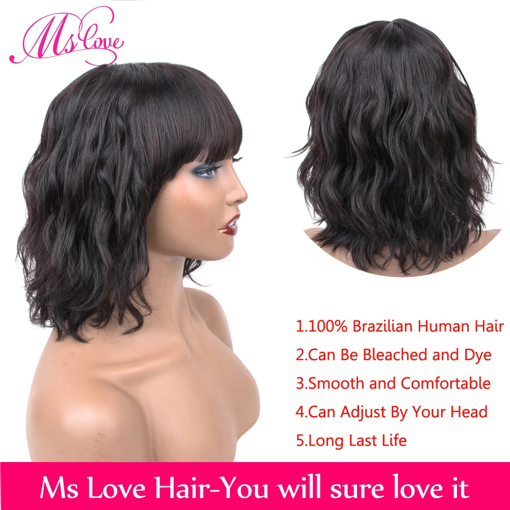 Special Offer Short Human Hair Wigs With Bangs For Black Women Loose Body Wave Brazilian Wig Natural Color Dark Brown Wig Hair Mslove Discount 47% Today!