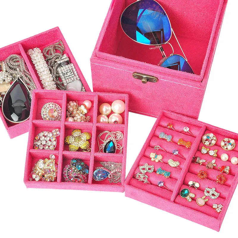 Product Name: Korean Style Edition Of Rabbit Hair Three Layers Deer Flannel Jewelry Box Jewelry Case Storage Velvet Box Ten Colors Optional