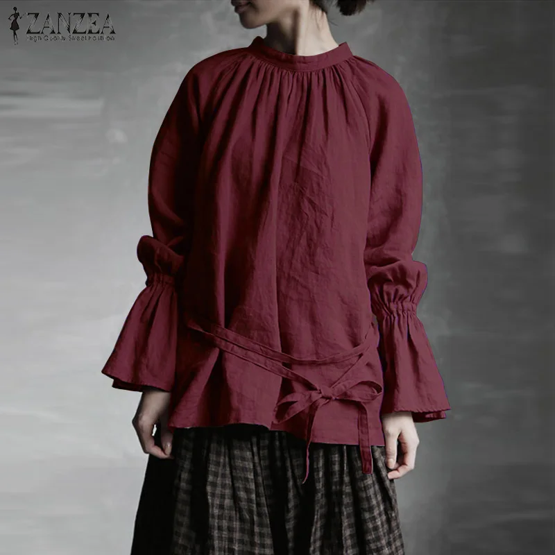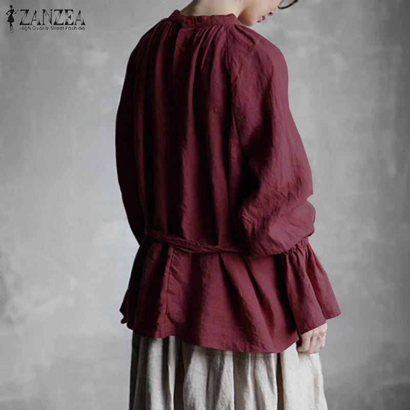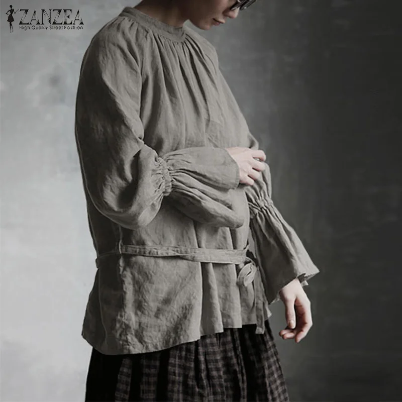 Special Offer 2019 ZANZEA Women Vintage Flare Sleeve Blouse Spring Cotton Linen Shirt Casual Solid Loose Work Blusas Retro Robe Top Femininas Discount 42% Today!