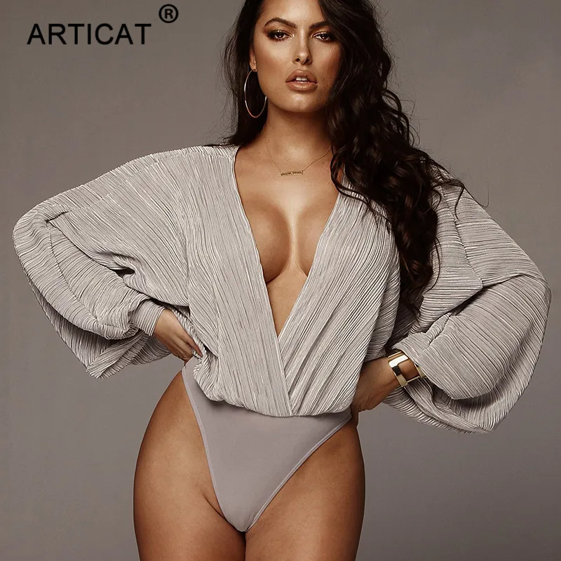 Product Name: Articat Deep V Neck Sexy Bodysuit Women Tops Long Sleeve Loose Rompers Womens Jumpsuit Spring Casual Body Suit Party Overalls