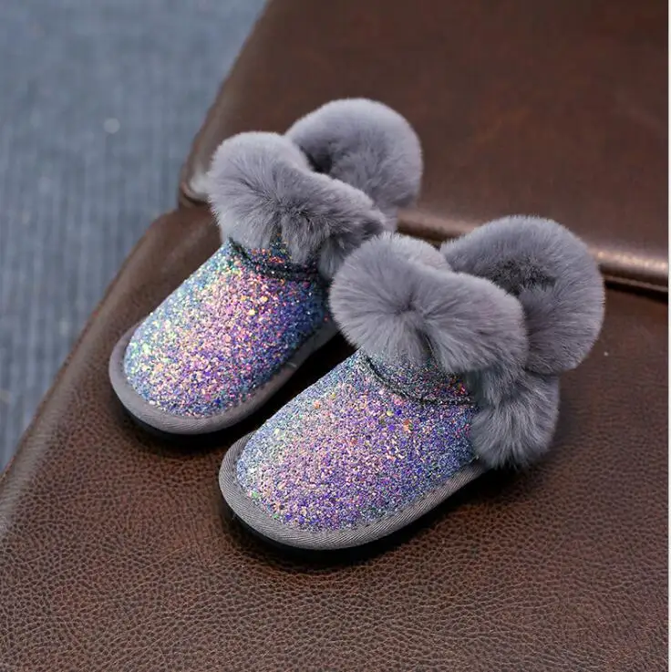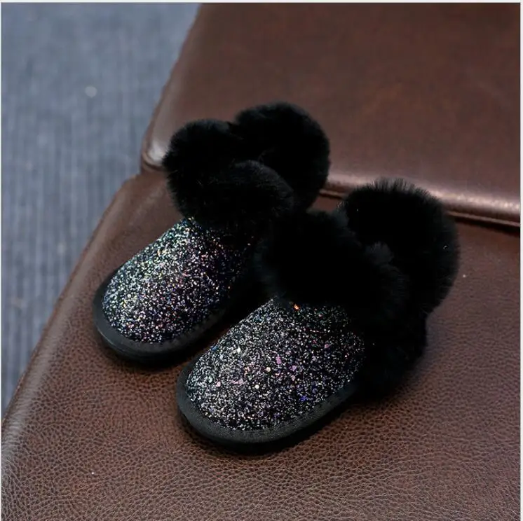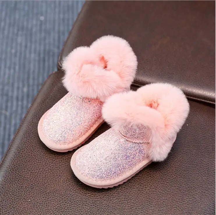Product Name: Bling Sequin Girls Boots Winter Shoes For Girls Pink Boots Children Warm Rabbit Hair Snow Boots Kids Ugs Style Plus Size 21 37