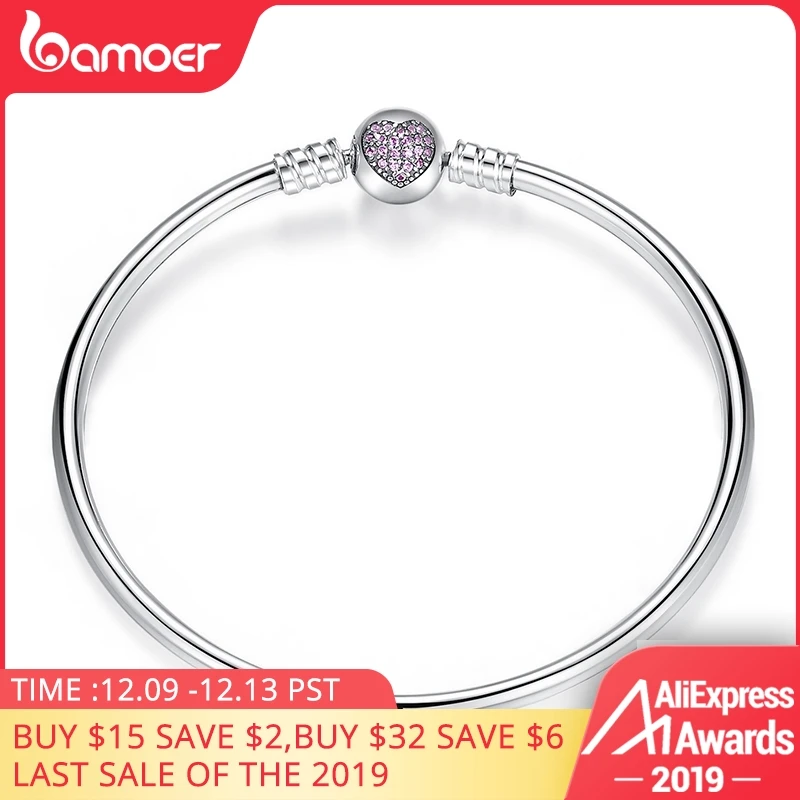 Best . (35% Off) Buy BAMOER Authentic 100% 925 Sterling Silver Snake Chain Heart Bangle Bracelet Luxury Jewelry PAS904 Cheap Online.