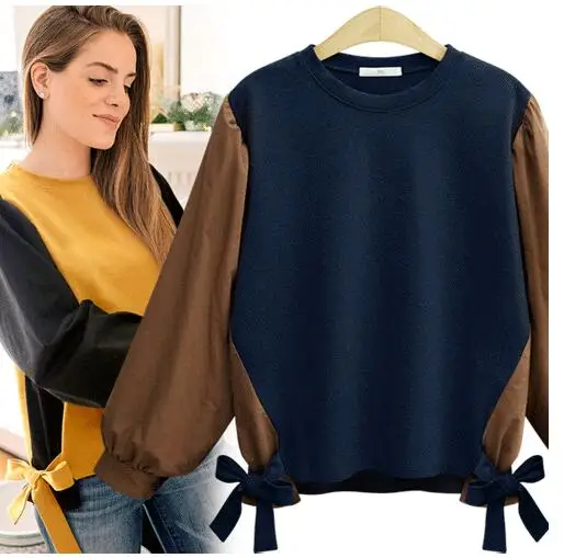 Product Name: L 4xl Plus Size Cotton Blusas Kimono Women Autumn Winter Patchwork Lace up Bow Blouses Europe Loose Female Shrit Tops 2018 New