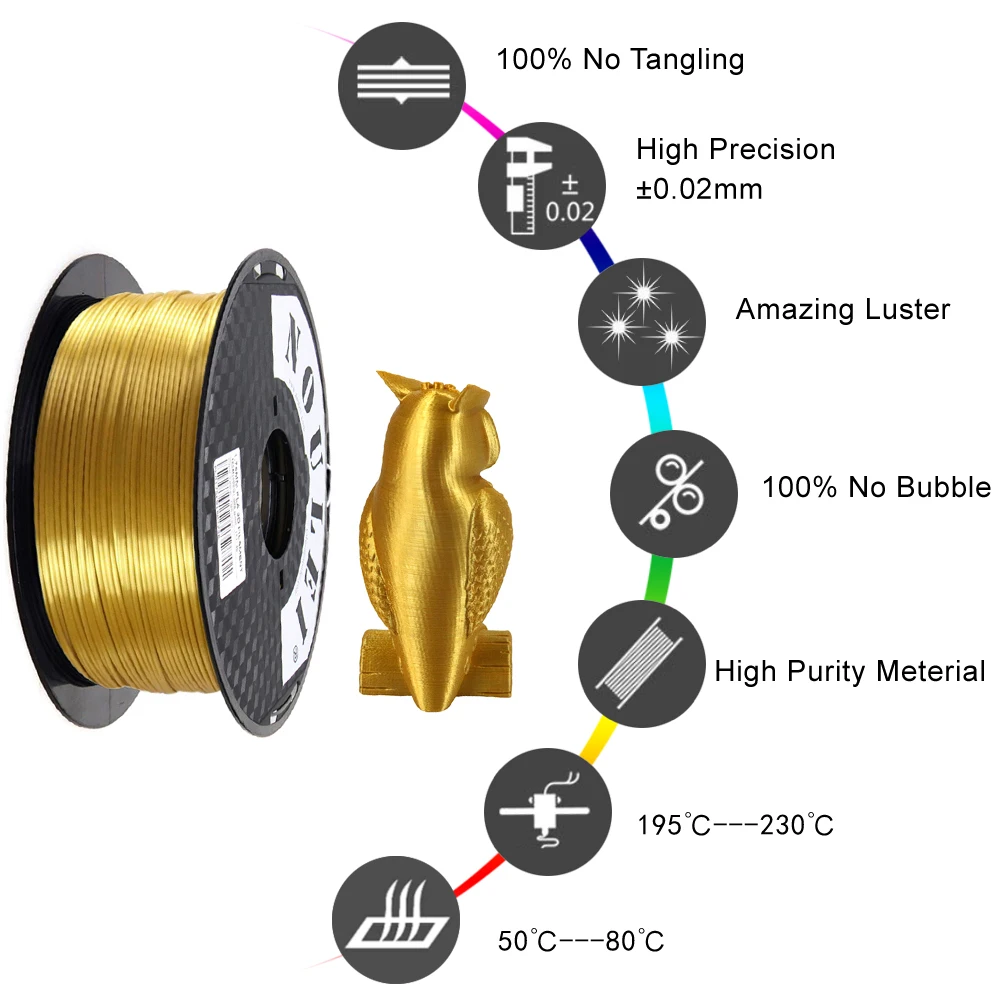 Best . (0% Off) Buy Noulei Quality Brand 3D Printer Filament Silk 1.75 1KG PLA Silky Rich Luster Metal Gold Copper Plastic Filament Materials Cheap Online.