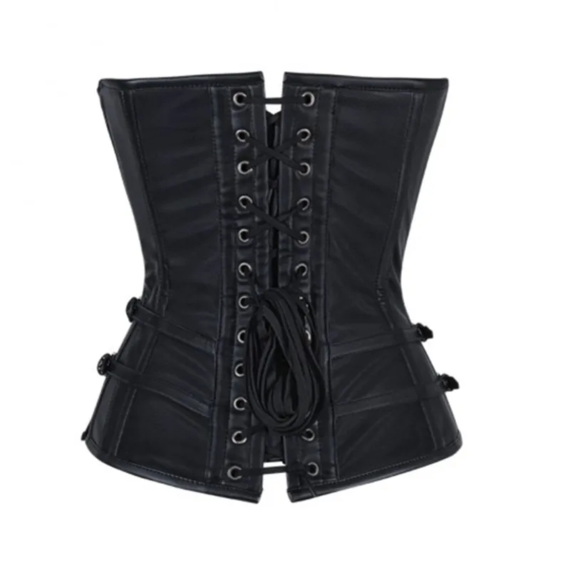 Special Offer Sliver Chain Style Sexy Women Leather Steampunk Corset Steel Boned Corset Gothic Faux Leather Black Shaperwear Corsage Korsett Discount 12% Today!