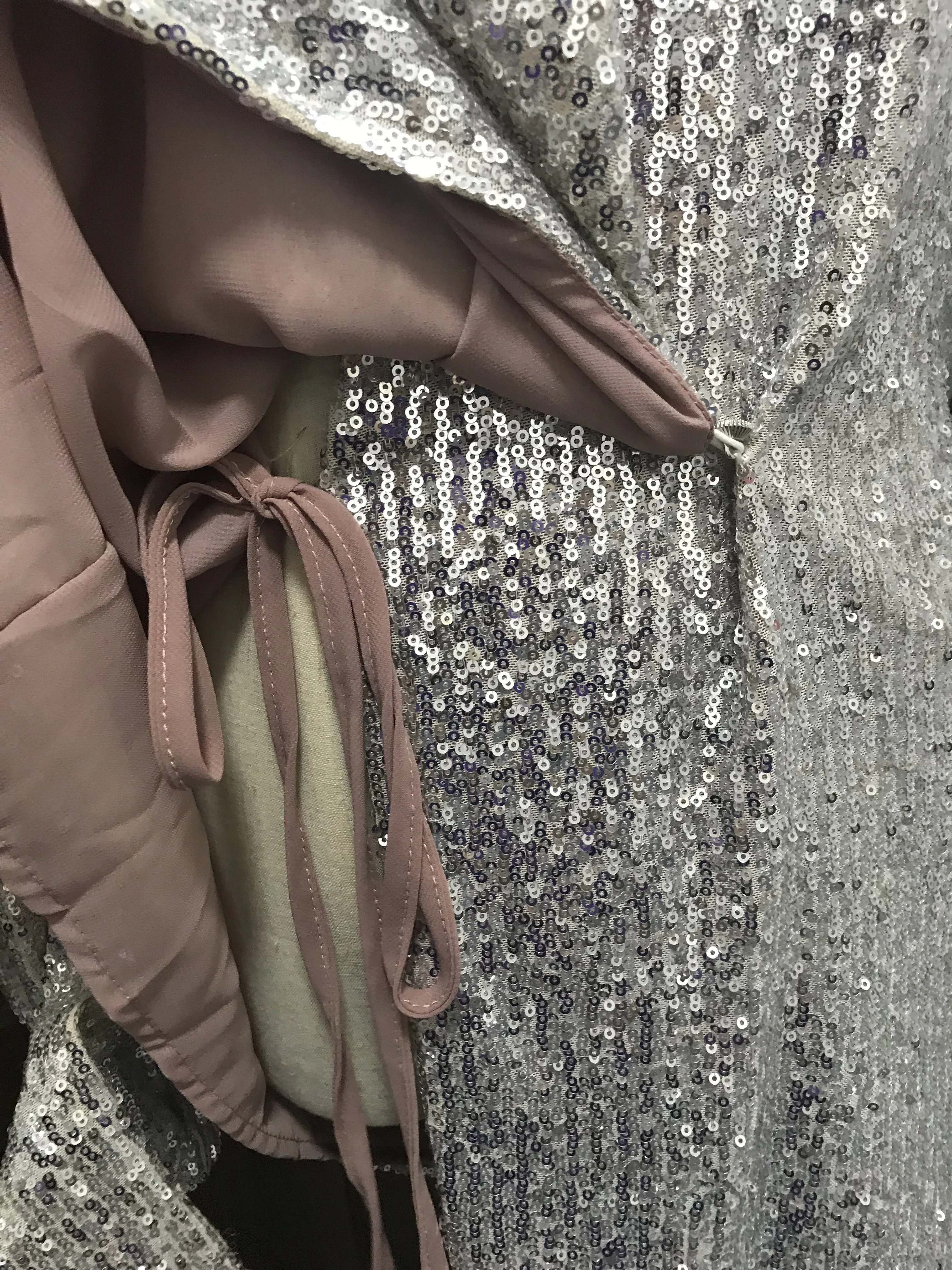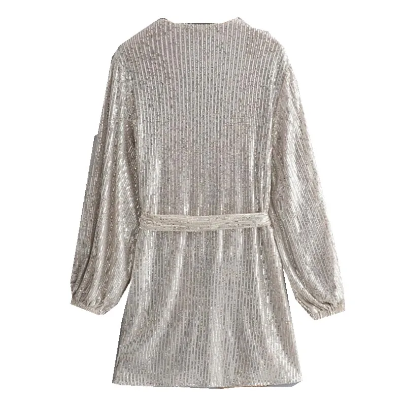 Product Name: 2019 New Silver Sequins Wrap Dress Lacing up Waist Split Slim Fit Women Long sleeve Tea Dresses Bow Tide Vestido Party
