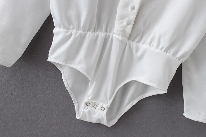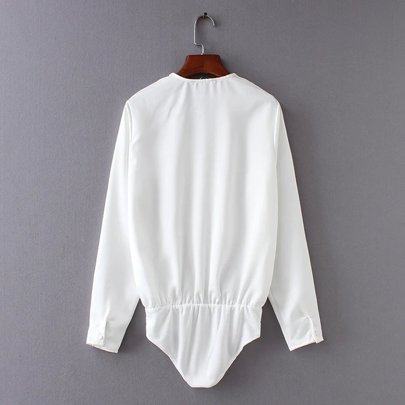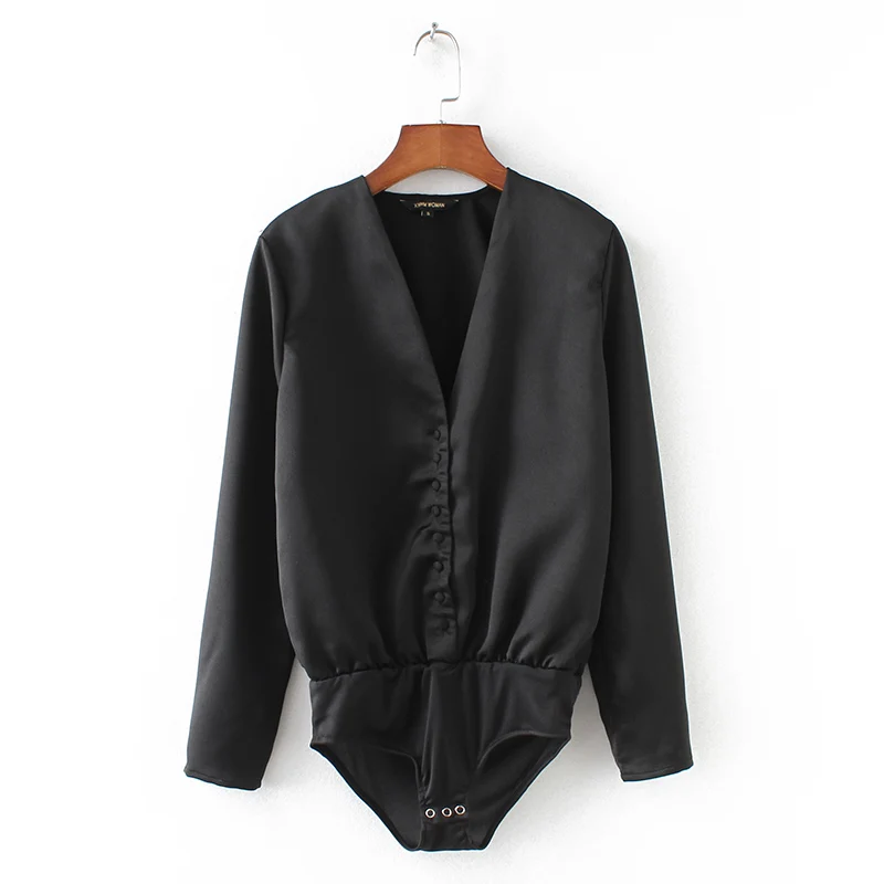 Product Name: Women elegant v neck single breasted black white color bodysuits shirt casual siamese blouse playsuits feminina blusas LS2708