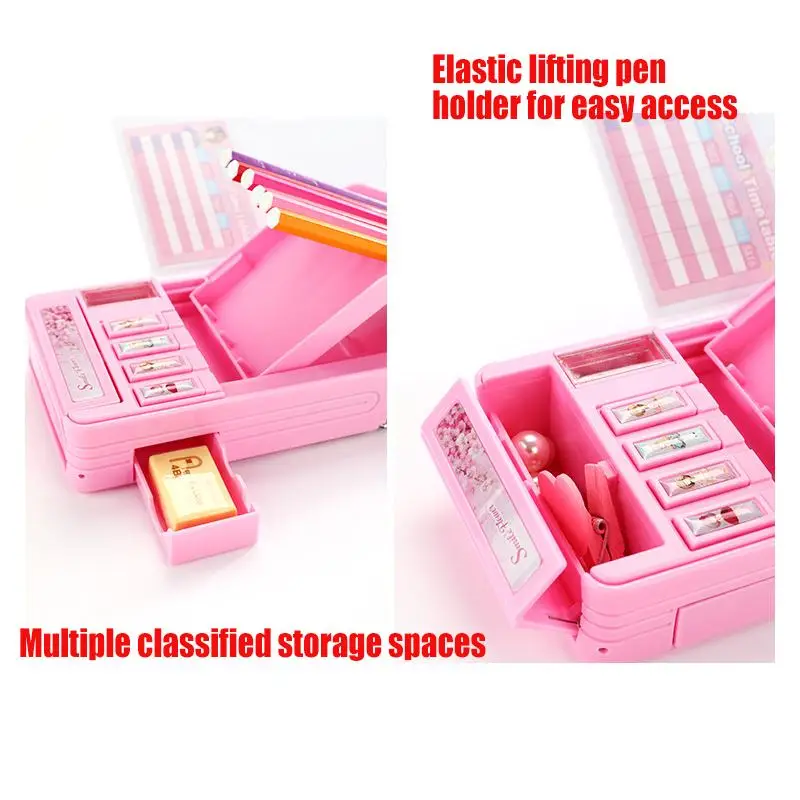Special Offer Plastic Cartoon Fancy Stationery Multi function Pen Box 2 Layer Double Open Multi layer Pencil Case Student Gift School Supply Discount 45% Today!