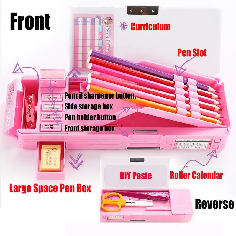 Best . (45% Off) Buy Plastic Cartoon Fancy Stationery Multi function Pen Box 2 Layer Double Open Multi layer Pencil Case Student Gift School Supply Cheap Online.