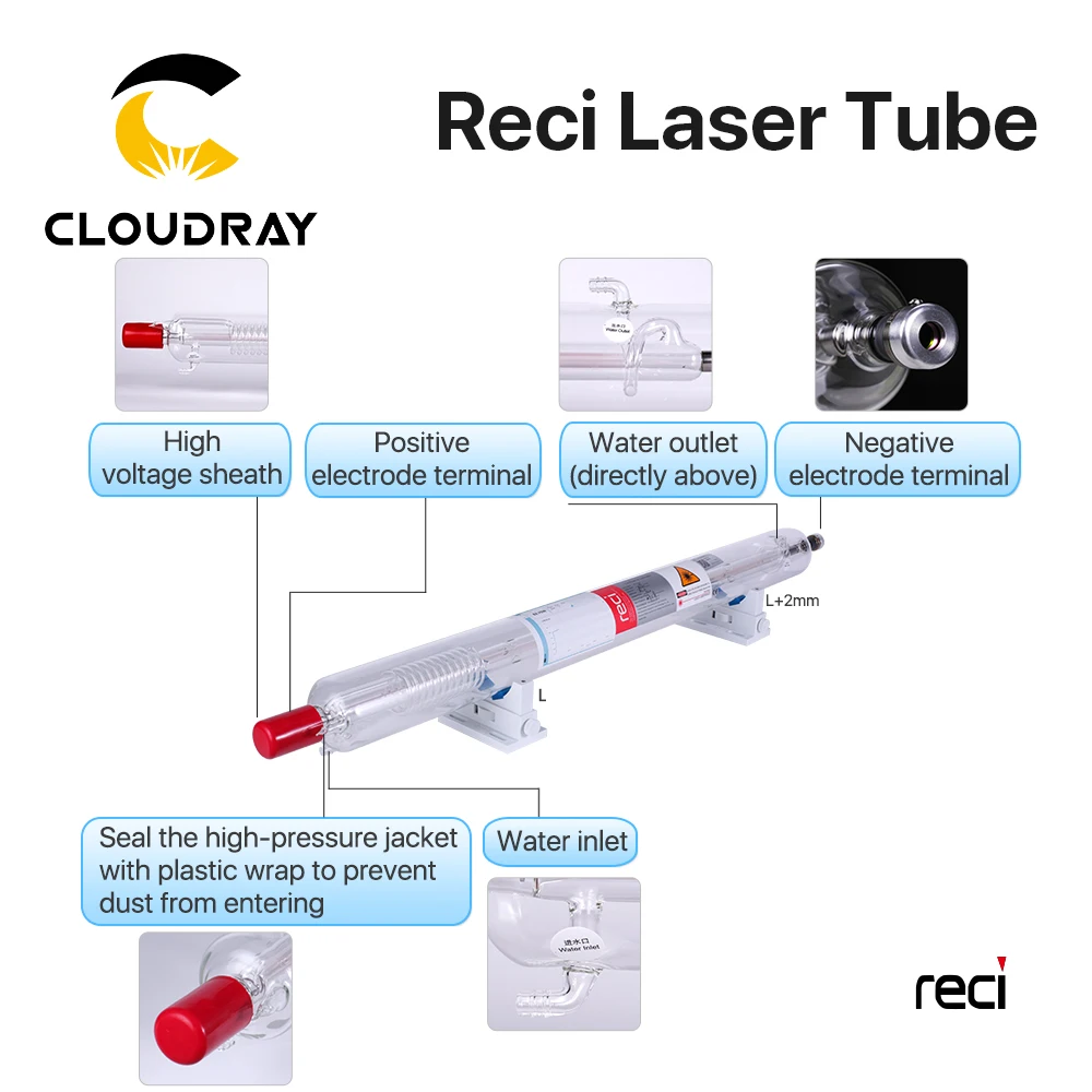 Product Name: Cloudray Reci W2 T2 90W 100W CO2 Laser Tube Wooden Box Packing Dia. 80mm 65mm CO2 Laser Engraving Cutting Machine S2 Z2