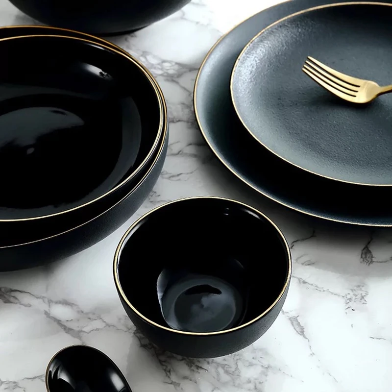 Special Offer gold edge matte black ceramic accent plate dinner plate soap bowl tableware dinner set Discount 15% Today!