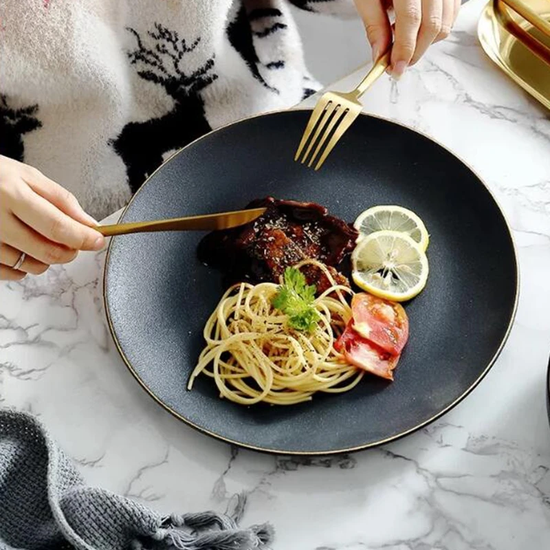 Best . (15% Off) Buy gold edge matte black ceramic accent plate dinner plate soap bowl tableware dinner set Cheap Online.