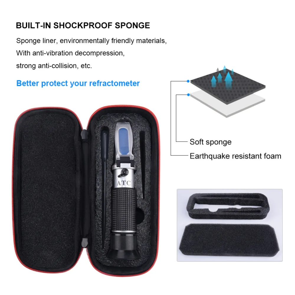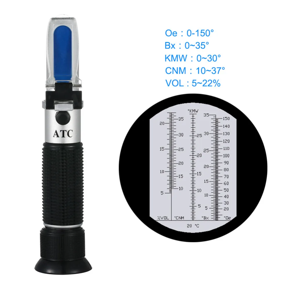 Product Name: New Shock Box Oechsle Brix Refractomete 5 22% VOL 0~35% Brix 0~150 Oe Oechsle 0~30 KMW Refractometer wine Fruit Juice Brew