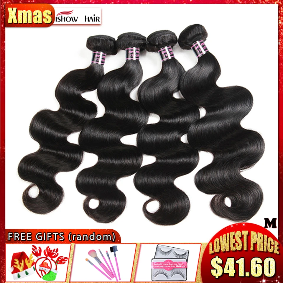 Special Offer 4 Bundles Body Wave Brazilian Hair Weave Bundles Ishow 100% Human Hair Bundles Deal Natural Color Non Remy Hair Weft Promotion Discount 52% Today!