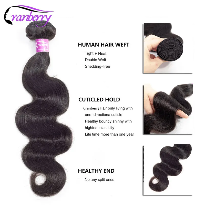 Product Name: CRANBERRY Hair Brazilian Body Wave Hair Weave Bundles With Lace Closure 3 Bundles Human Hair With Closure 100% Remy Human Hair