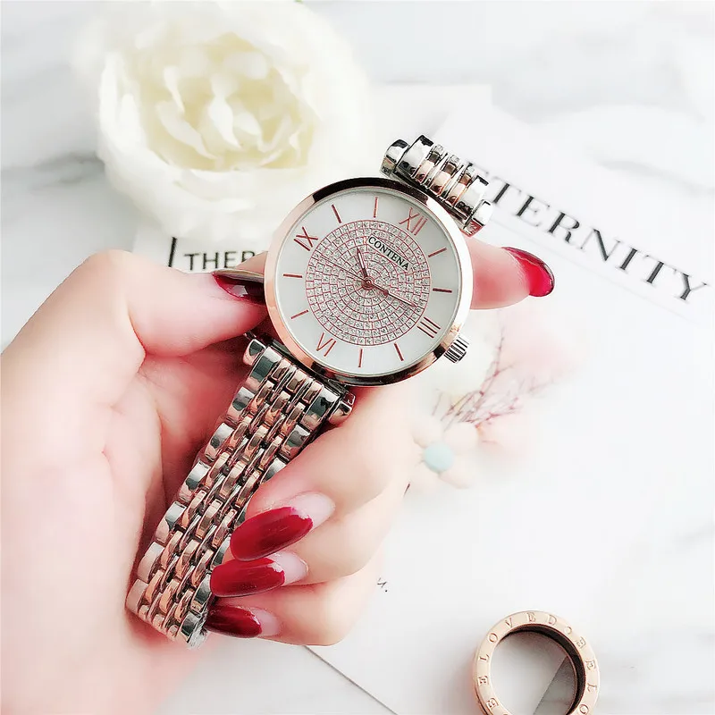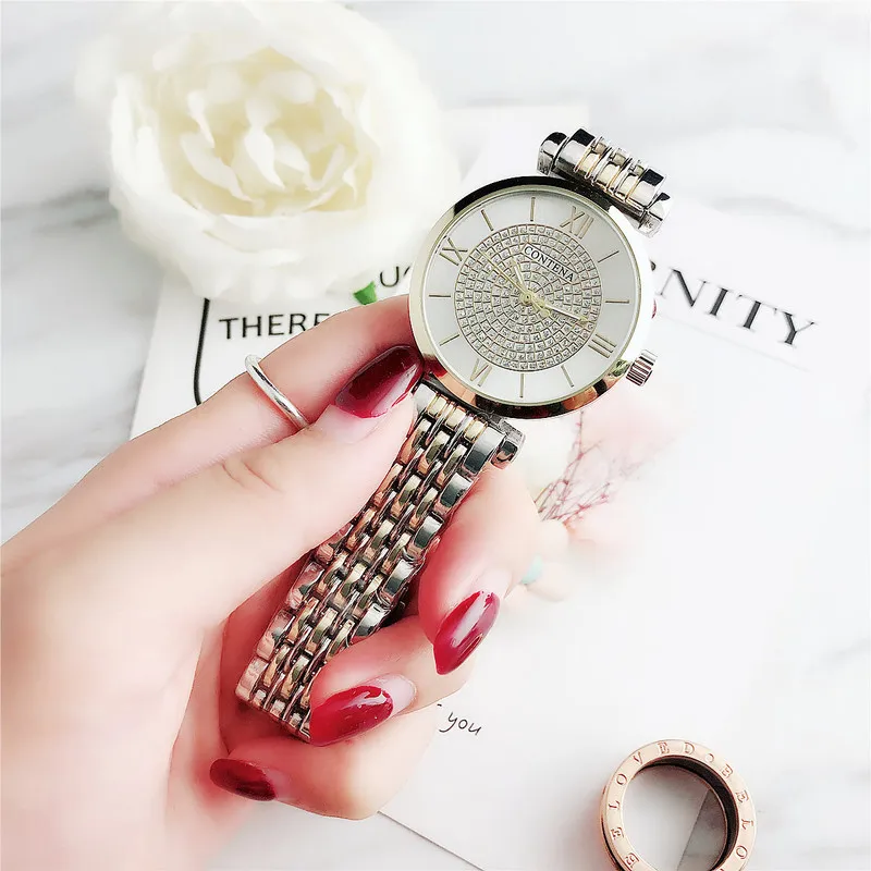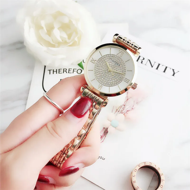 Product Name: CONTENA New Arrived Fashion Business Women Watches Luxury Rhinestone Dial Roman Circle Design Elegant Bracelet Ladies Wristwatch