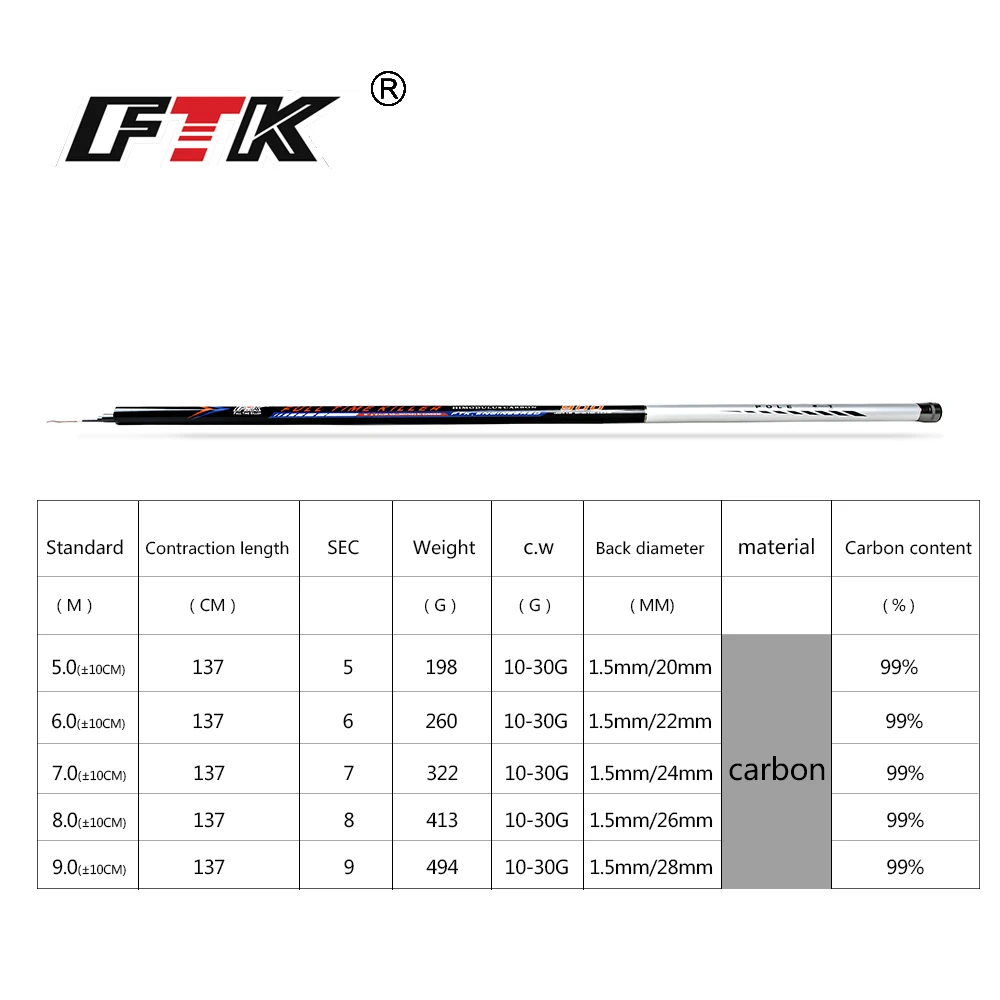 Product Name: FTK 99% Carbon Pole Fishing Rod for 5m,6m,7m,8m,9m Super hard Hand Rod C.W. 10 30g for Freshwater Fishing