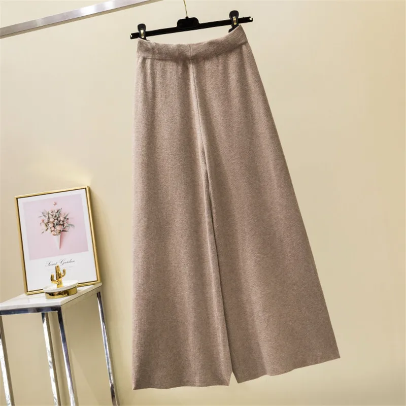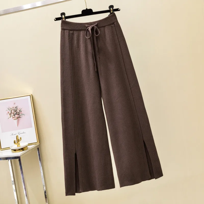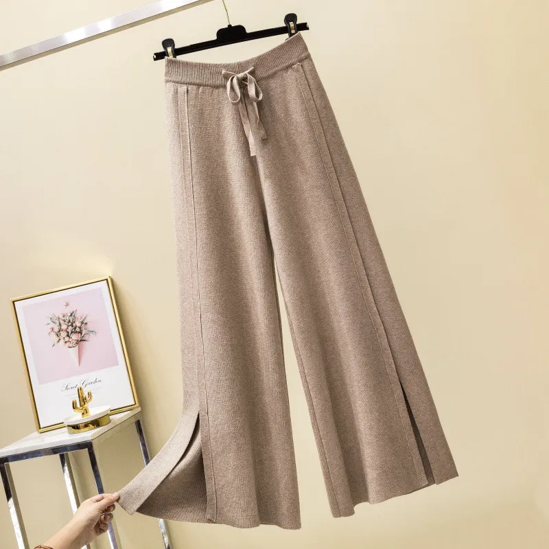 Product Name: Women 2019 Loose Pure Casual Soft Pants Autumn Winter Knit Cashmere Sweater Wide Leg Pants Elastic Waist Bow Tie Split Trousers