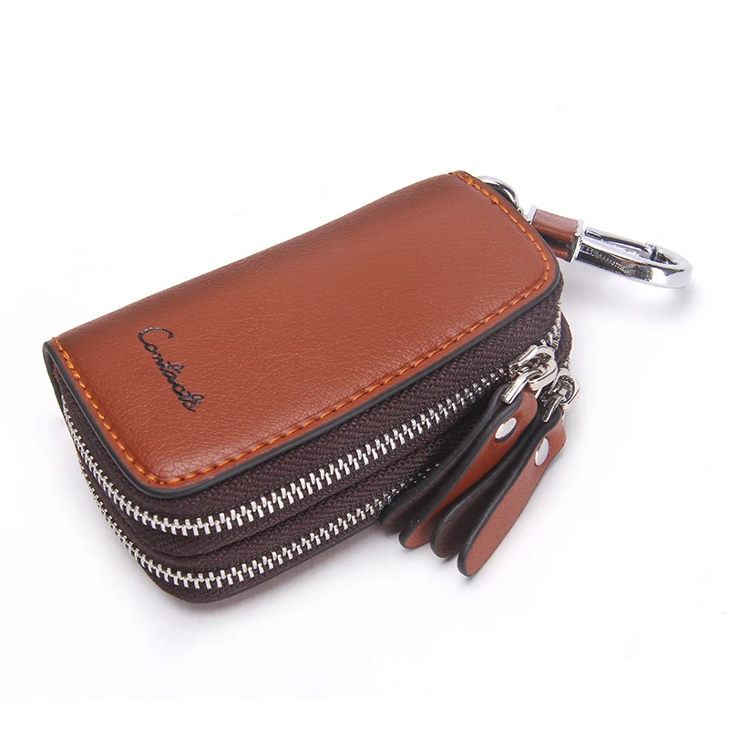 Product Name: CONTACT S Genuine Leather Car Key Wallets Fashion Key Holder Housekeeper Keys Organizer Double Zipper Keychain Case Key Pouch