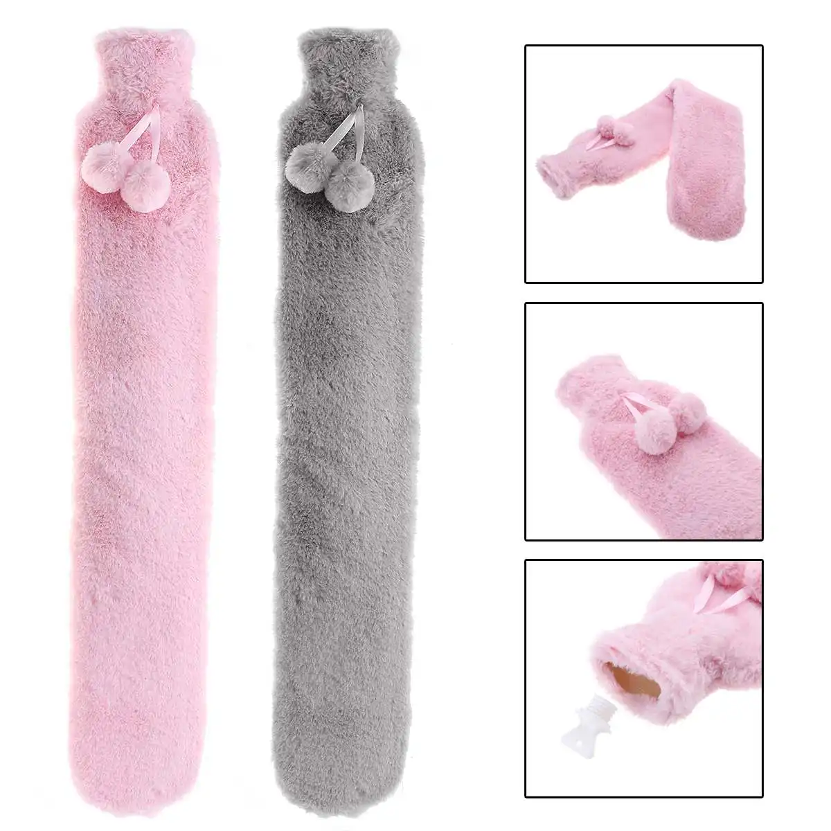 Special Offer 74x14cm Pink Grey Removable Cover Fur Rubber Hot Water Bottle Extra Long Hot Water Bottles Bag For Waist Hand Foot Warming Discount 55% Today!