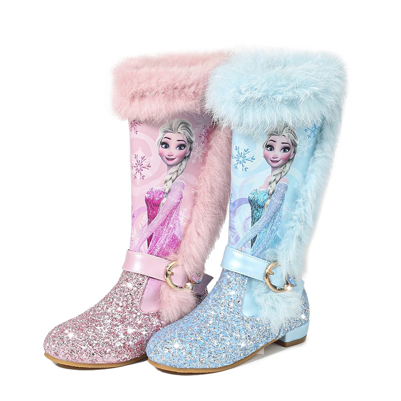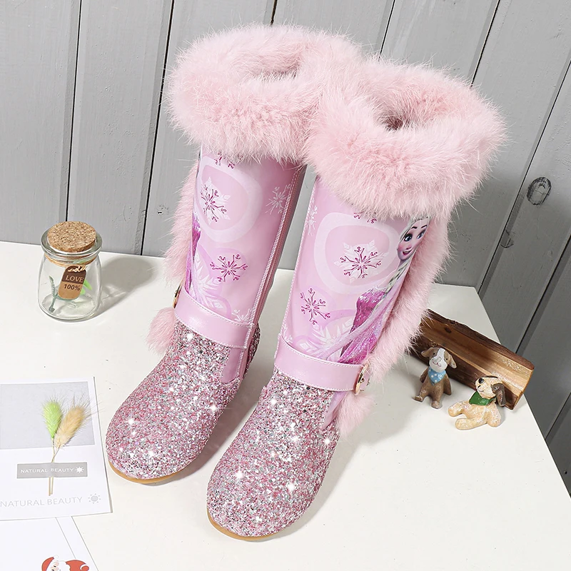 Product Name: Kids Princess shoes Children Cartoon Boots PU leather Sequin Winter Boots New girls Genuine Wool Warming Over Knee boots