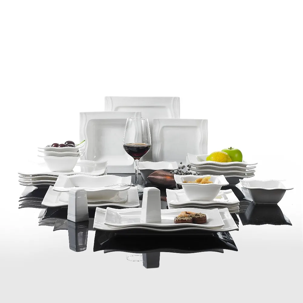 Product Name: MALACASA Series Mario 28 Piece Porcelain Dinner Set with 6 Bowl Dessert Soup Dinner Plate 2 Salt Shaker Set 2 Rectangular Plate