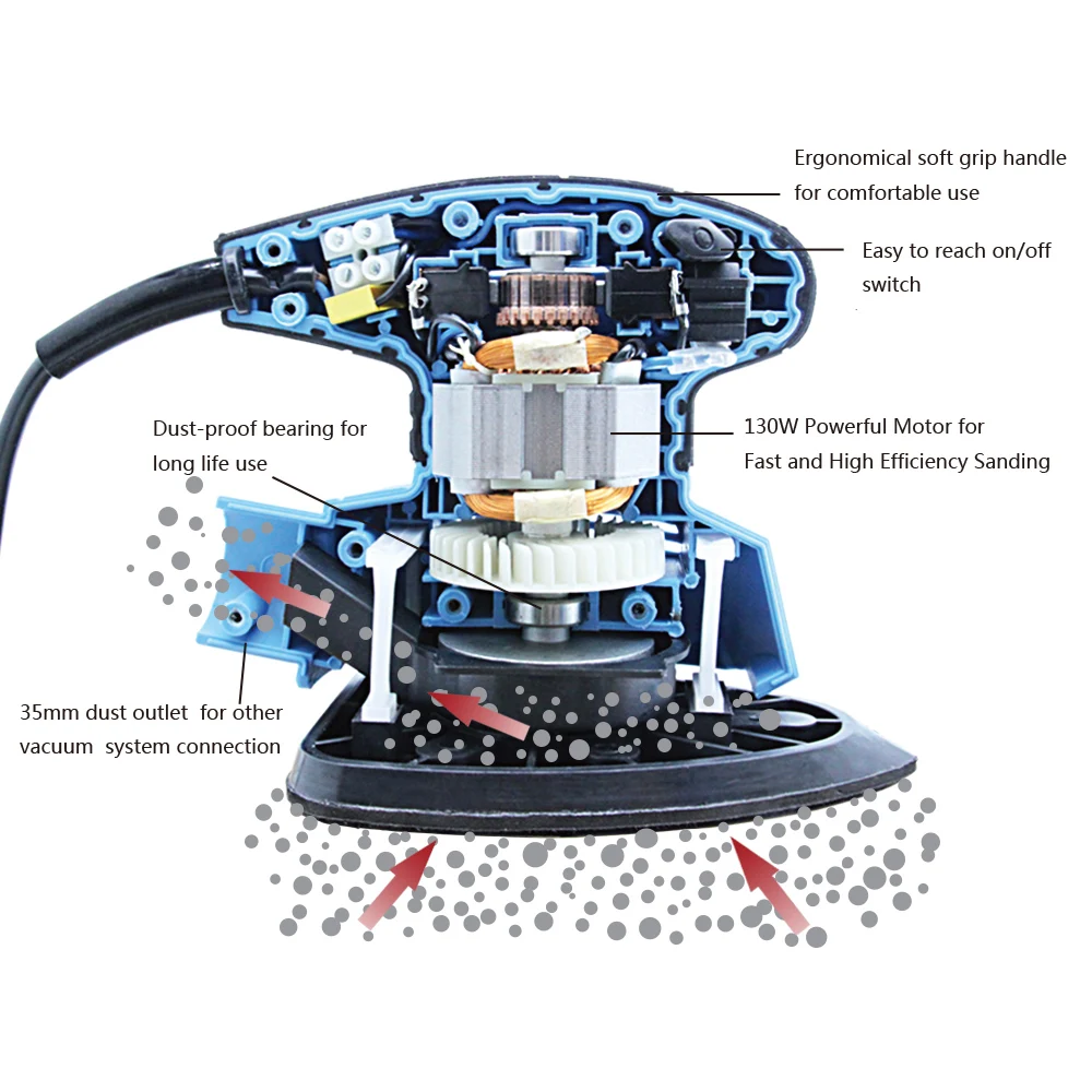 Product Name: TASP 130W Electric Mouse Sander Detail Sanding Machine Woodworking Tools for Wood with Dust Collection Box 15 Sandpapers
