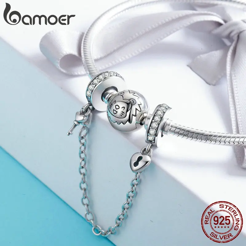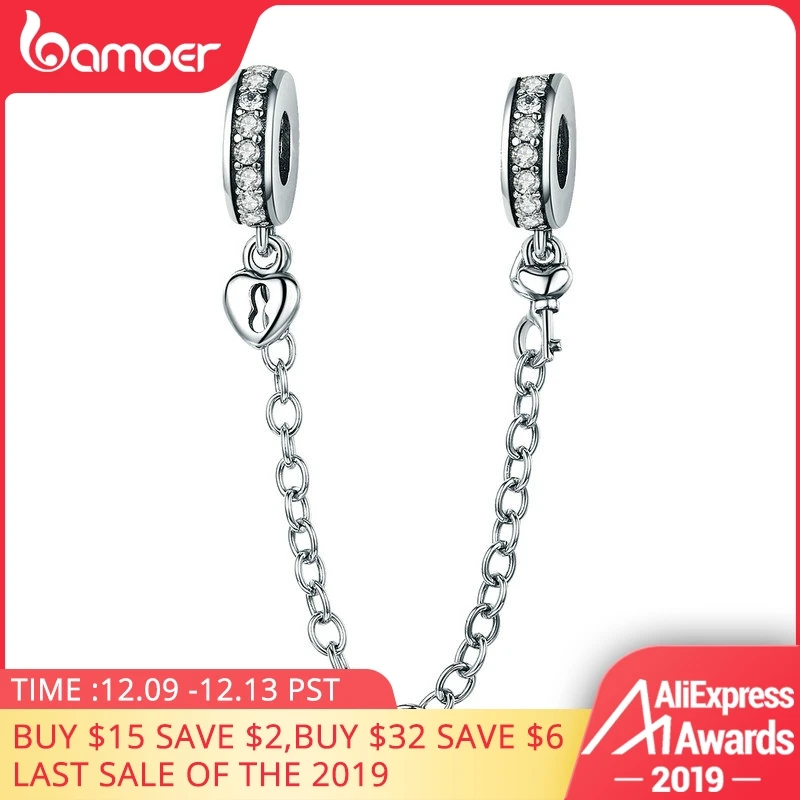 Special Offer BAMOER Authentic 925 Sterling Silver Stackable Heart Love Heart Dangle Safety Chain Charm fit Charm Bracelet DIY Jewelry SCC606 Discount 30% Today!
