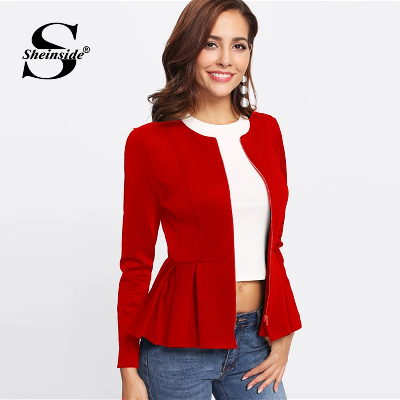 Special Offer Sheinside Red Autumn Jacket Women Zip Up Box Pleated Peplum Coat Ruffle Tiered Layer Outerwear 2018 Womens Jackets And Coats Discount 41% Today!