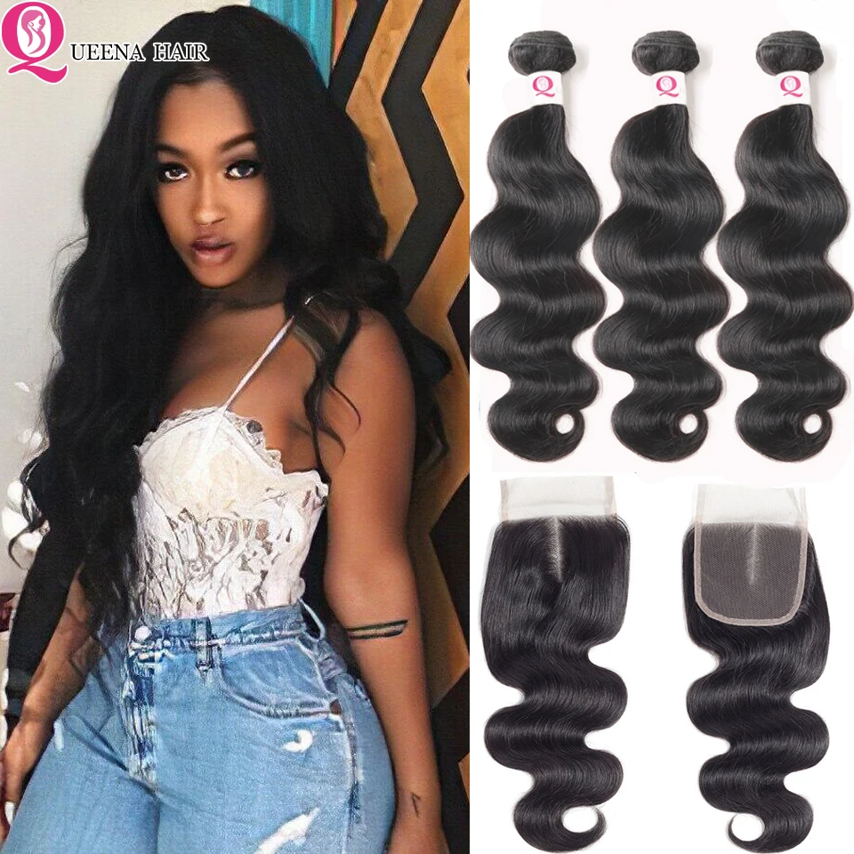 Special Offer Brazilian Human Hair Wavy Weave Bundles With Closure Body Wave Bundles With Closure Pre Plucked With 3 Bundles With Closure Remy Discount 44% Today!