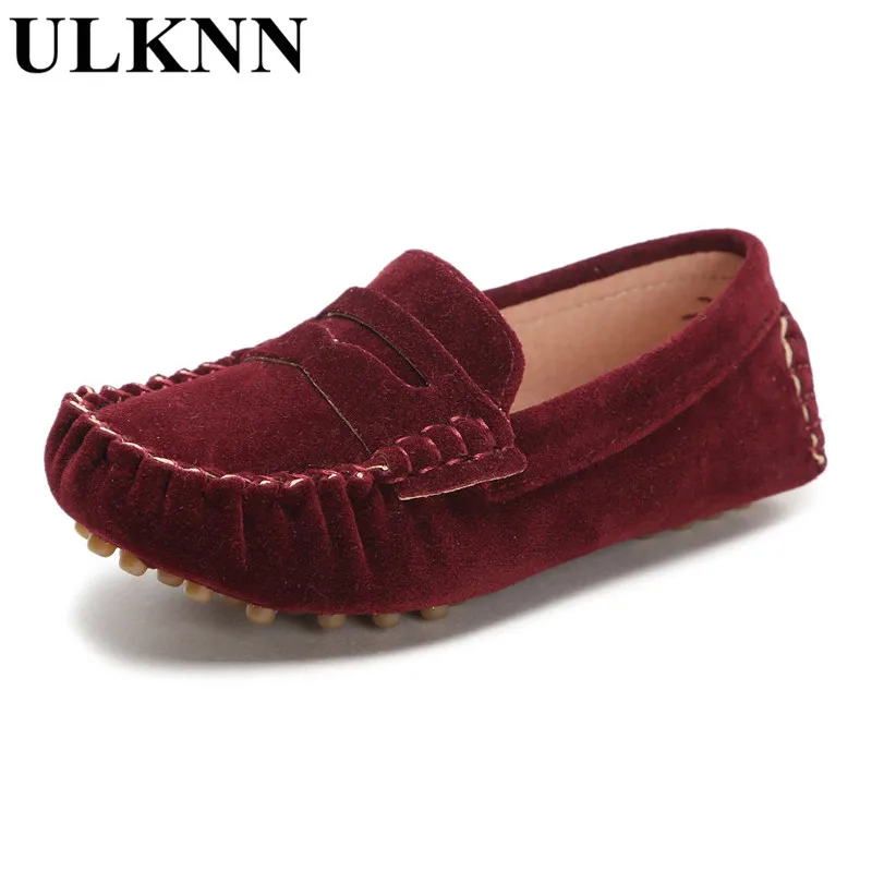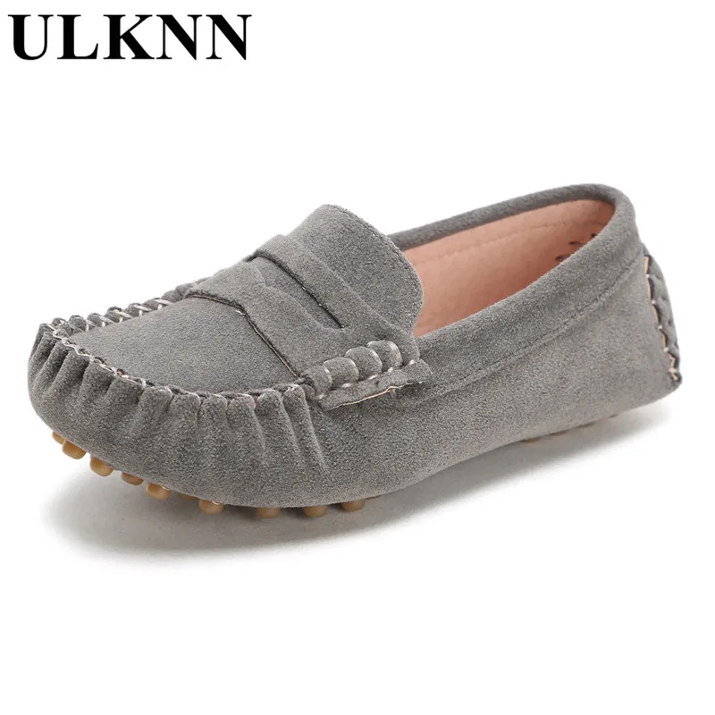 Product Name: ULKNN candy color children soft leather loafers kids fashion casual boys and girls boat shoes single shoes 21 32 gray shoe