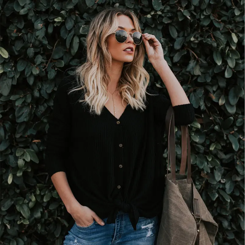 Best . (51% Off) Buy Women s T Shirt Long Sleeve V Neck Solid Color Cardigan T shirt Bottom Loose Wild Casual Spring Large Size Chemise Femme MZ3344 Cheap Online.