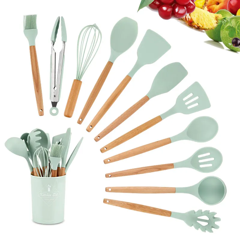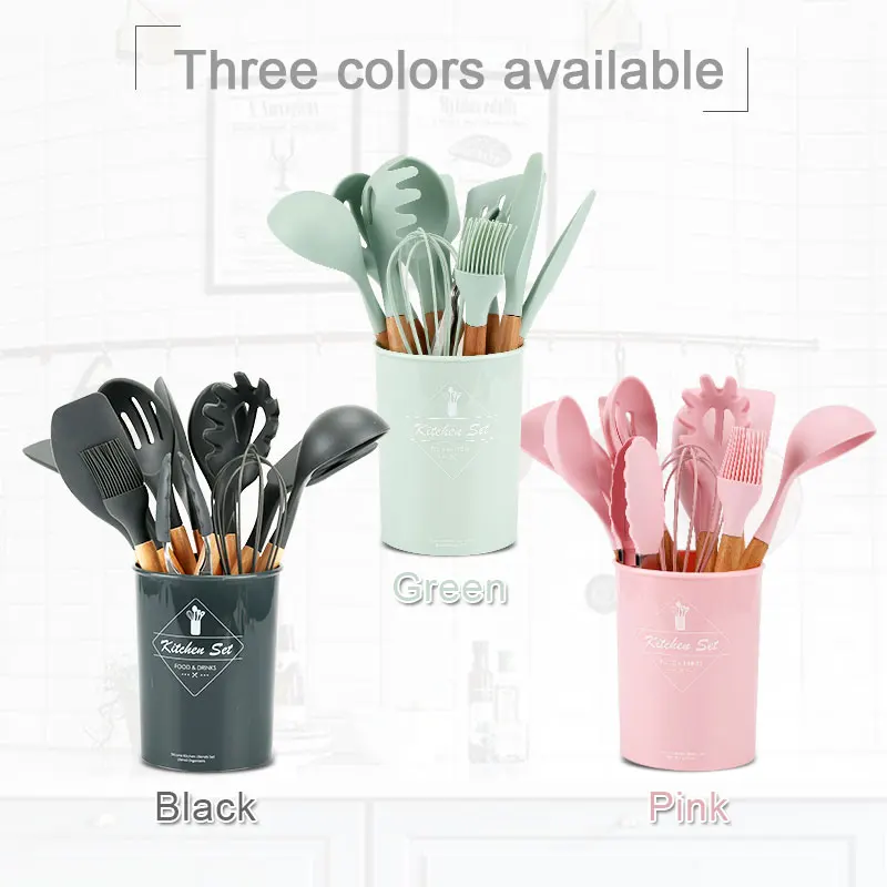 Special Offer Kitchen Silicone Cooking Utensils Set Non stick Spatula Shovel Wooden Handle Cooking Tools Set With Storage Box Kitchen Tools Discount 20% Today!