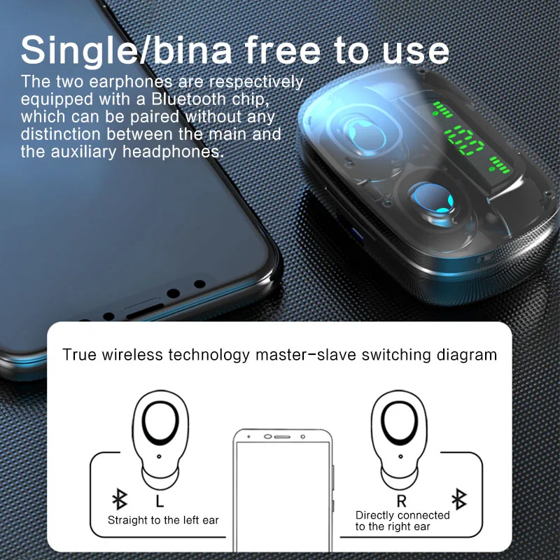 Product Name: Bluetooth 5.0 Earphones 8D Stereo Mini Wireless Headphone Waterproof Sport Earbuds Headset Earphone Mic + Charging Case Lakukom